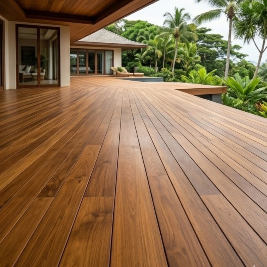 Tratamento especializado para áreas externas. Realizamos a raspagem e aplicação de produtos específicos para proteger a madeira contra o sol e a chuva, devolvendo a beleza natural das áreas de lazer