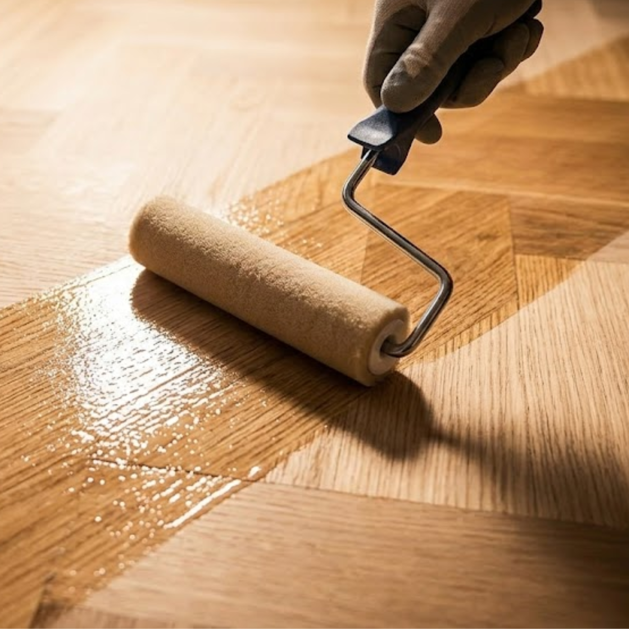 Não economizamos na qualidade do seu patrimônio. Utilizamos apenas vernizes e seladores renomados mundialmente, como Bona e SINTECO, que oferecem maior durabilidade, resistência a riscos e opções de secagem rápida sem cheiro.