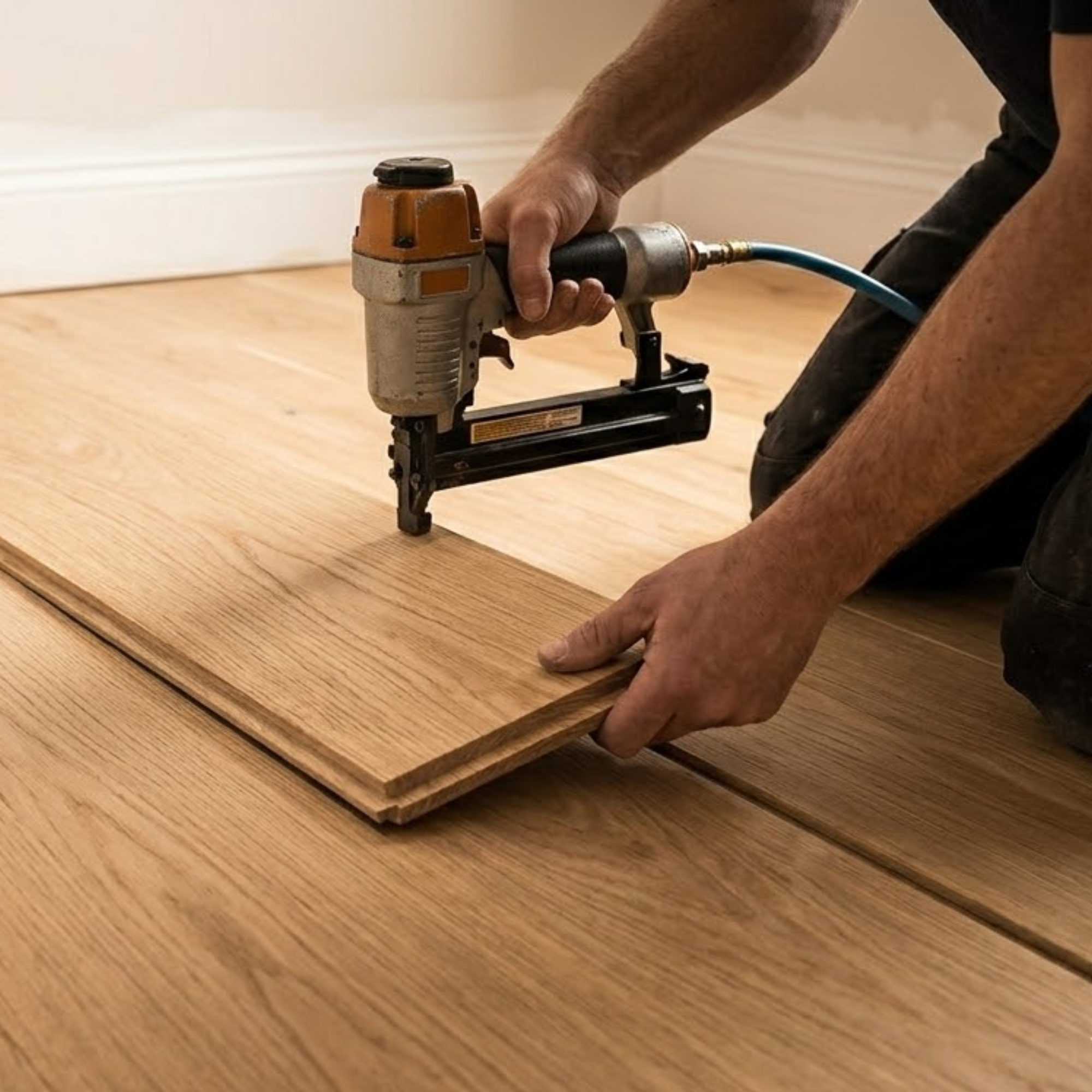 Montagem técnica de assoalhos, tacos e rodapés com precisão absoluta. Garantimos o alinhamento perfeito e a estabilidade da madeira, utilizando técnicas que evitam futuros empenamentos ou ruídos.